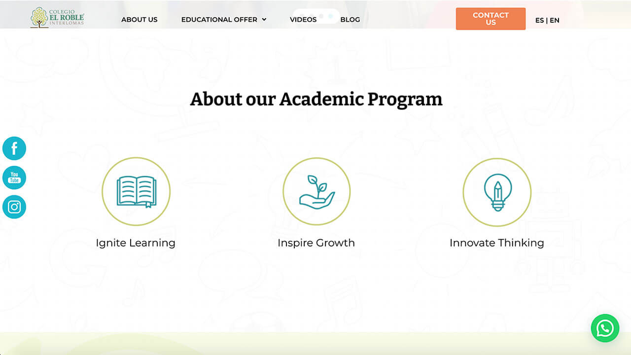 El reto principal era diseñar un sitio web que transmitiera los valores de marca del colegio El Roble.